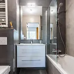 أثناء إقامتهم في هذه الشقة، يمكن للضيوف الوصول إلى الفناء والركن لارتداء الملابس المجهزة بمكيف الهواء. لمزيد من الراحة، يتمّ توفير المرحاض المنفصل والدوش في مكان الإقامة. علاوة على ذلك، هناك مجفف الشعر وملاءات الحمام والمناشف أيضًا.